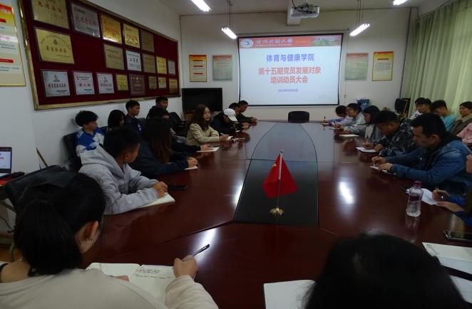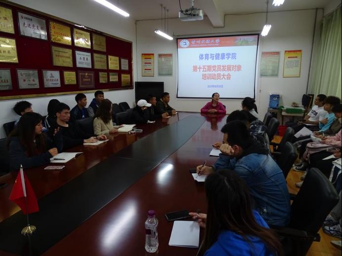 为进一步提高发展党员质量,加强对党员发展对象的教育和培养,5月20日上午我院在体育学院会议室开展第十五期党员发展对象培训班动员大会,学院领导黄咏院长、指导老师唐世利出席会议,全体发展对象参加了此次大会。